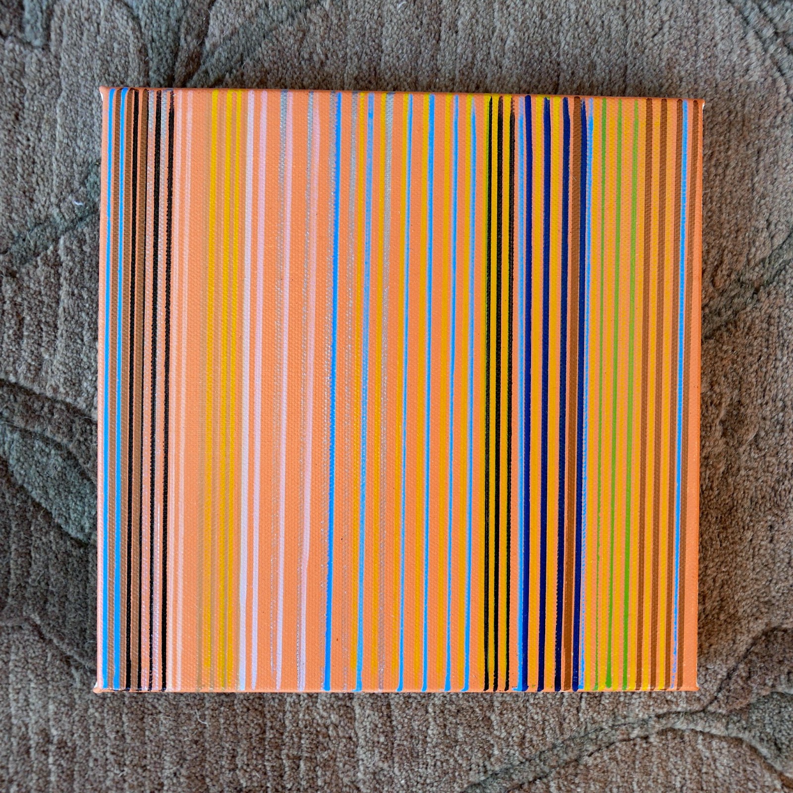 Stripe drawing. Acrylic paint and oil pen on canvas. 8"x8" 2014